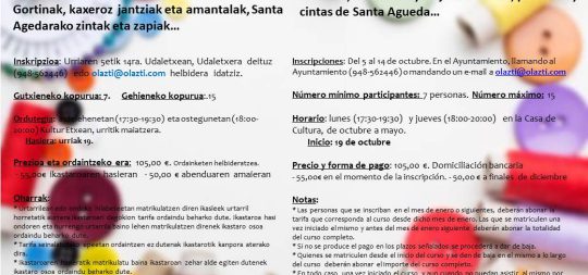 Inskripzioa: Urriaren 5etik 14ra. Udaletxean, Udaletxera deituz (948-562446) edo olazti@olazti.com helbidera idatziz. ...